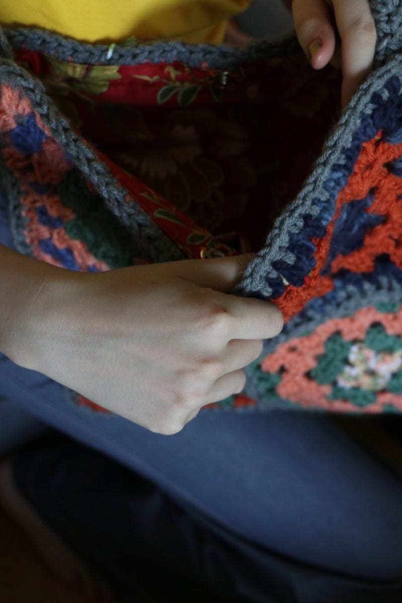 One of a kind Granny Square bag - Carol Meyer Crochet Originals - Orange & Grey