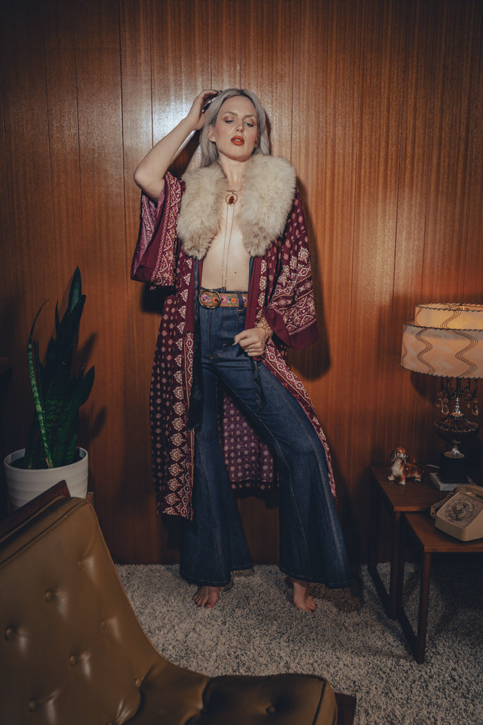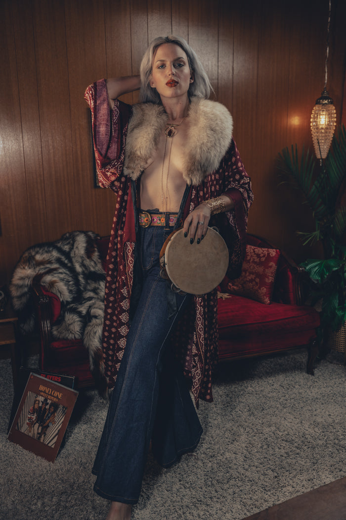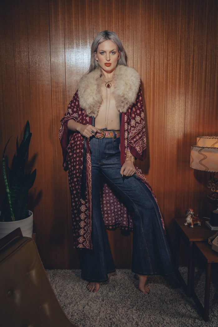 Our super wide Jeanne bells are the ultimate 70s style denim that hugs your hips and flares out in a dramatic sweep giving you legs for days. Pair them with a flowy peasant blouse or a fitted tee for a laid back yet totally sexy vibe. This is the look that says you're ready to dance, dream and live free with a twist of timeless flair!