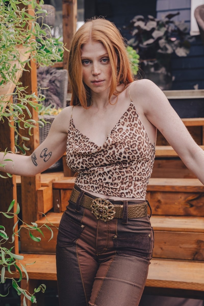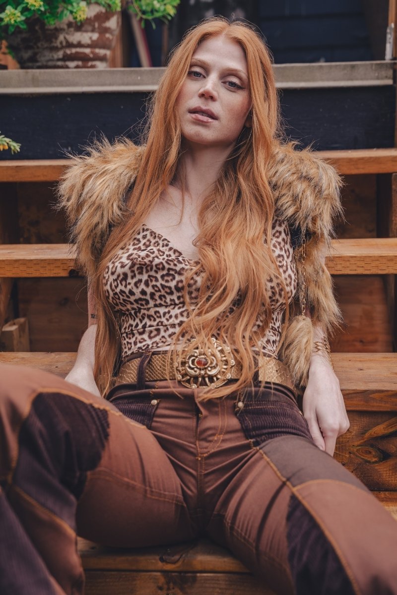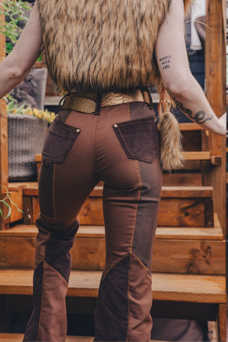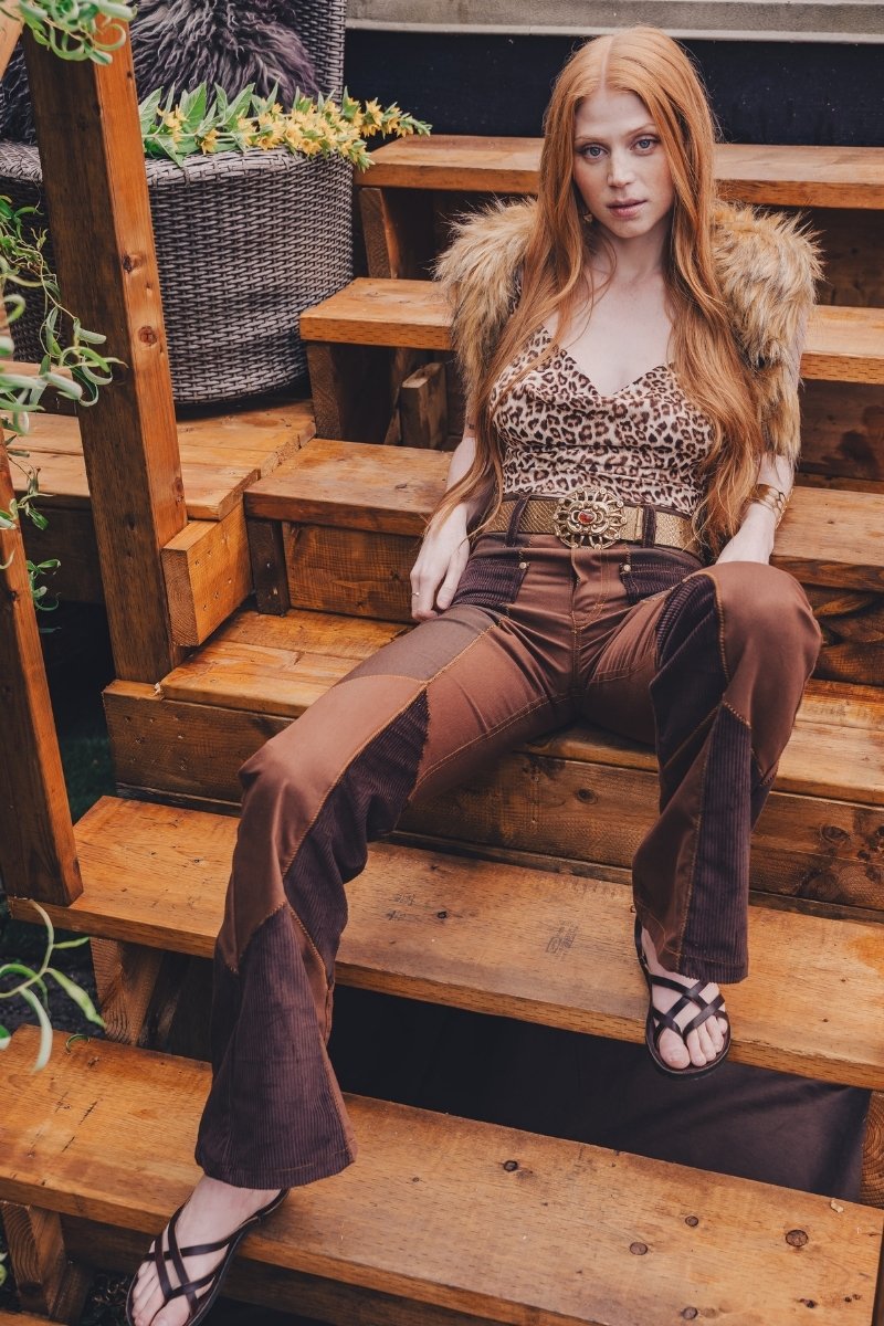 Atrae miradas y revoluciona la escena con nuestros pantalones acampanados Janice de patchwork: un resurgimiento del rock and roll con alma. Confeccionados con parches de mezclilla de inspiración vintage, estos pantalones acampanados aportan la actitud moderna de los 70 y un estilo de alto voltaje a cada paso.