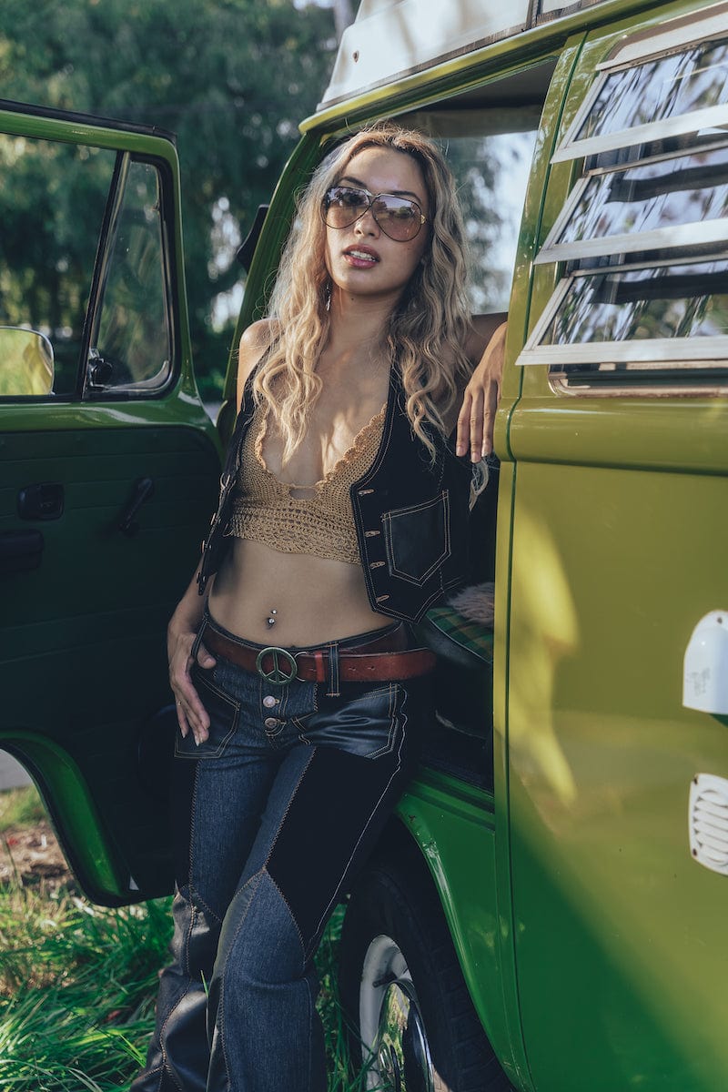 Prepárate para arrasar con nuestros jeans acampanados de patchwork, ¡diseñados pensando en nuestras divas de la música! Estos jeans inspirados en los años 70 ofrecen un ajuste sexy y estilizado que se ajusta a tu cintura y caderas antes de convertirse en esos icónicos pantalones acampanados. Perfectos para ser el centro de atención, ¡solo añade plataformas y deja que brille tu rockstar interior!