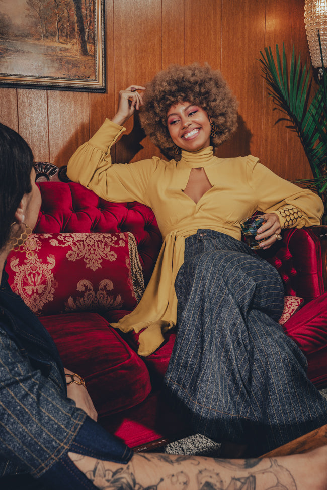 Aumenta tu encanto con nuestra blusa Mary Gold Peekaboo, una obra maestra sensual y femenina de los años 70. Con su atractivo diseño de espalda descubierta y sus divertidos detalles de peekaboo, esta blusa irradia una frescura natural y un encanto innegable, perfecta para noches de discoteca o aventuras diurnas. Es la combinación definitiva de elegancia moderna y sofisticación sexy.
