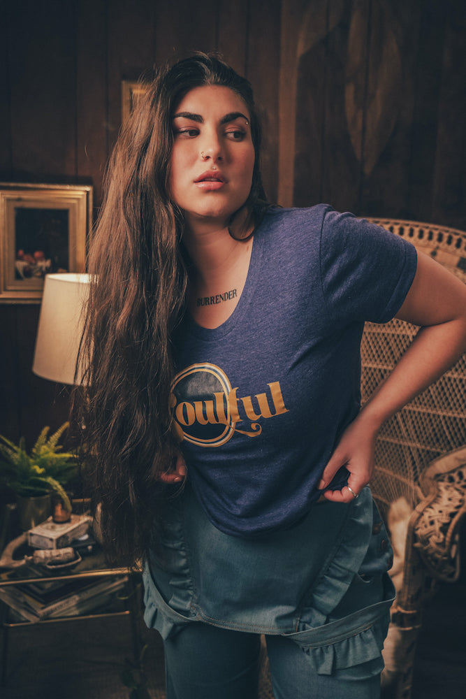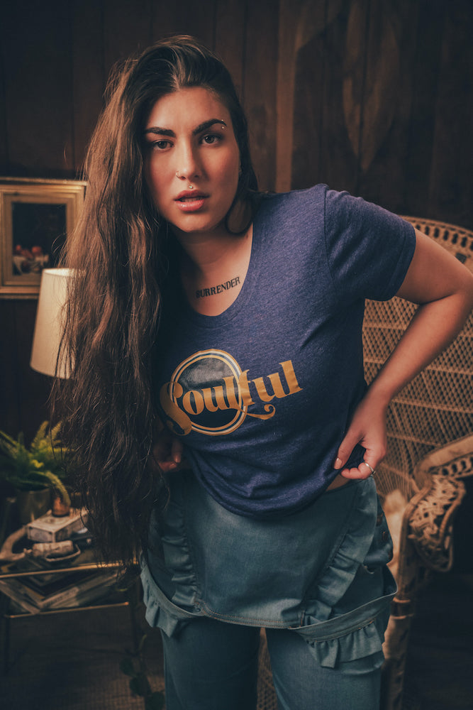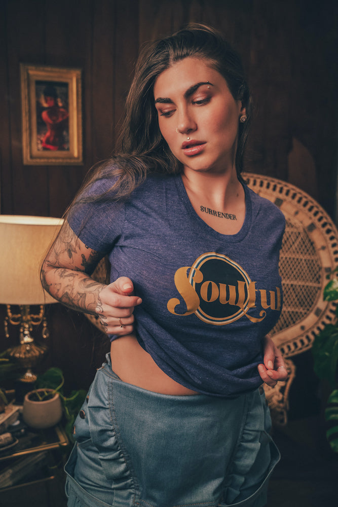 Mantente fresco y siempre conmovedor con nuestra camiseta gráfica retro, confeccionada 100 % algodón para un aire vintage y atemporal. Con la llamativa inscripción "Soulful" y ribetes en contraste, esta prenda básica inspirada en los años 70 está hecha para espíritus libres, amantes de la música y amantes del groove que buscan un estilo con un toque funk.