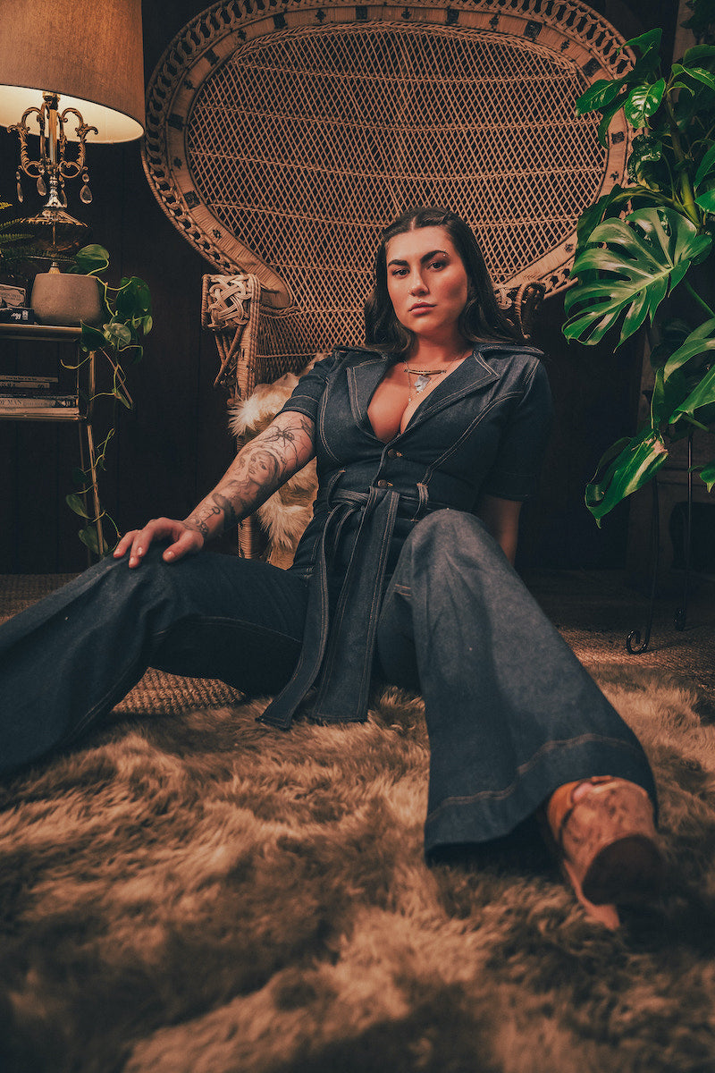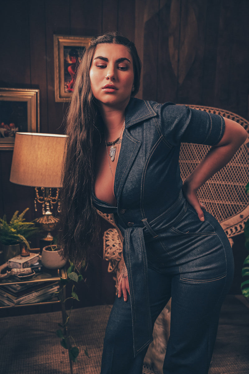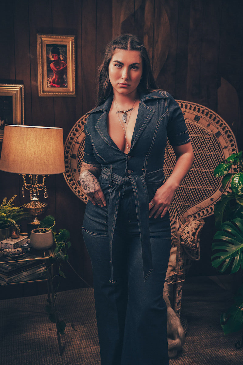 Prépare-toi à faire sensation ! Notre combinaison en denim stretch Lola Love, d'inspiration rétro, est un rêve groovy des années 70 avec ses pattes d'éléphant ultra larges, son décolleté plongeant et sa taille cintrée par une ceinture pour une silhouette de diva disco. Agrémentée de 3 boutons en laiton et d'une braguette zippée, cette merveille en denim est faite pour danser, séduire et faire tourner les têtes partout où tu iras !