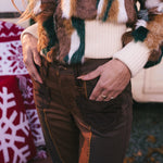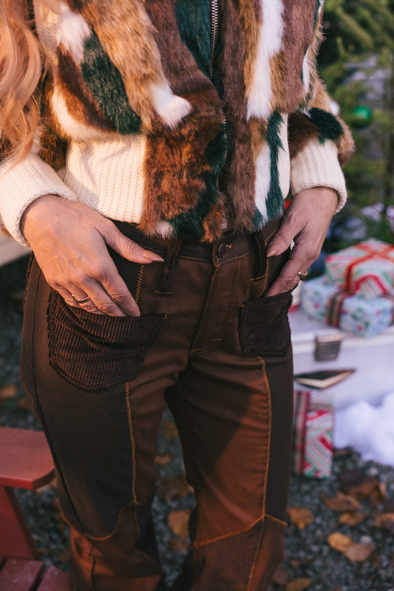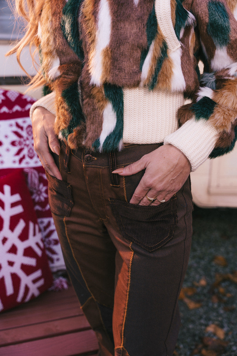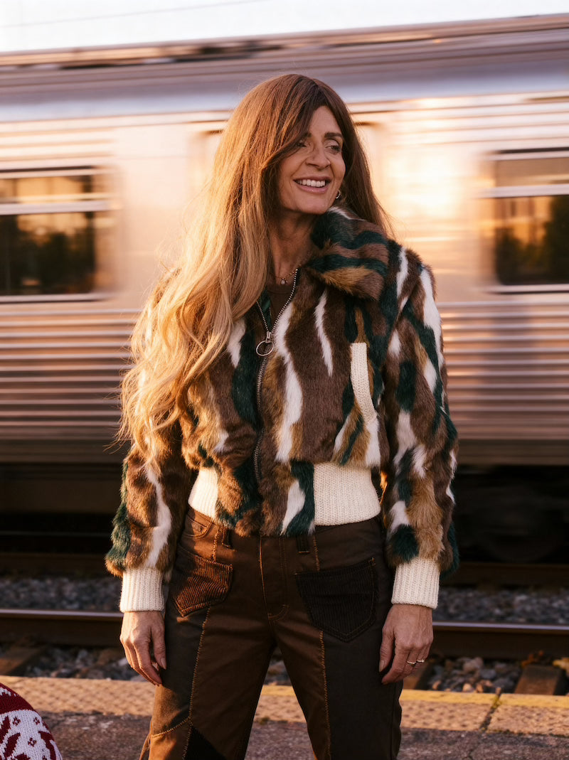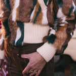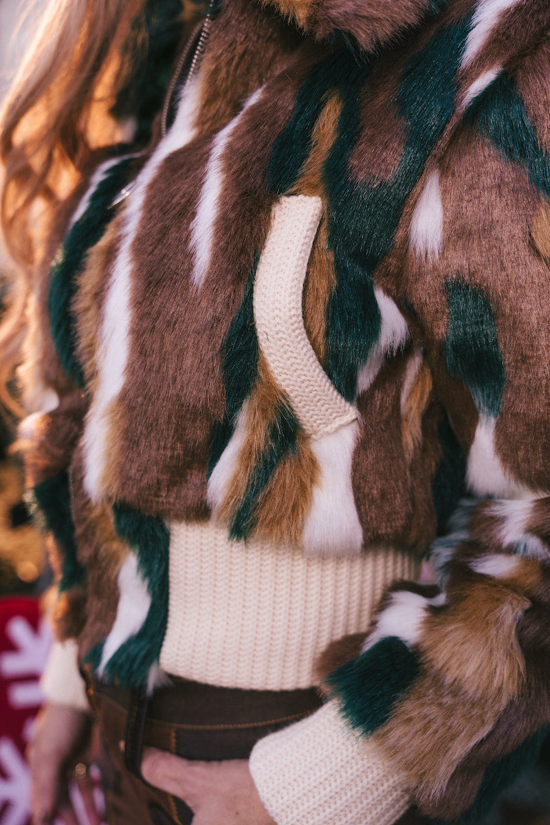 Enfilez ce blouson bomber multicolore en fausse fourrure et plongez dans un rêve des années 70. Sa doublure en satin vert, sa fourrure douce marron et crème et sa fermeture éclair vous donneront envie d'affirmer votre style. Les poignets en maille crème et la taille cintrée sculptent votre silhouette et vous confèrent cette allure décontractée et irrésistible dont chaque femme est faite.