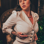 Manches bouffantes tulipe avec surpiqûres cuivrées et boutons en laiton